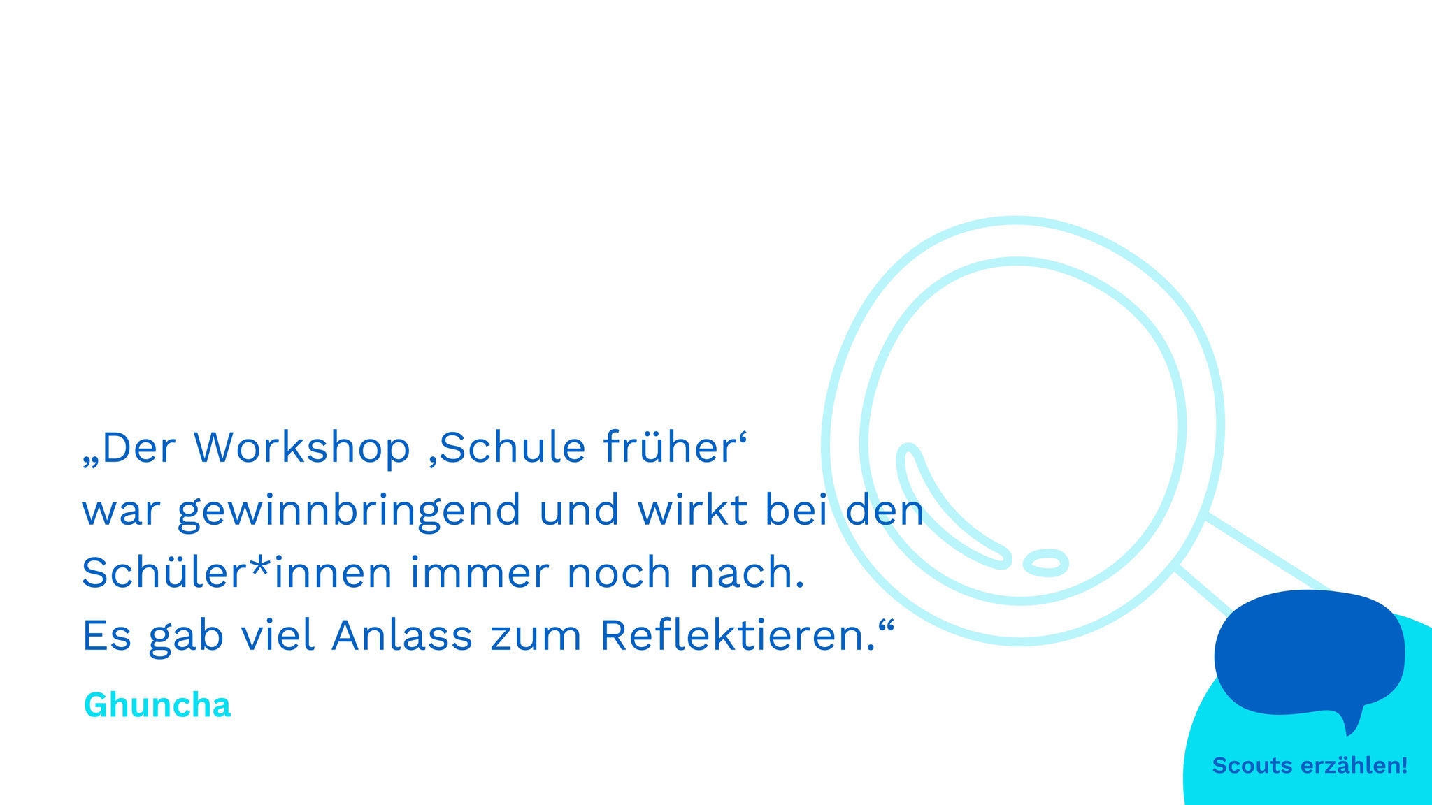 In einem speziellen Workshop haben sich die Schüler*innen im Zukunftsbaustein „Demokratie & Teilhabe“ mit der Schule der Vergangenheit auseinandergesetzt. Dieser Workshop hat die Jugendlichen noch tagelang zum Nachdenken und Diskutieren angeregt.