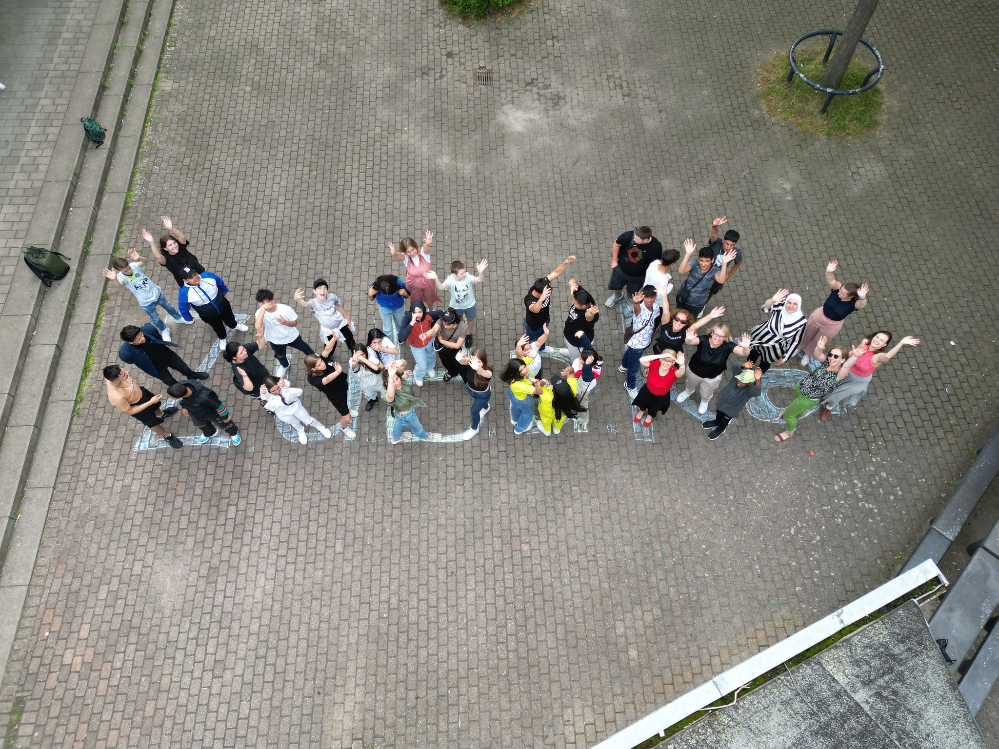 Das Highlight war eine Fotoaktion, bei der eine Drohne zum Einsatz kam. Gemeinsam versuchten Schüler*innen, Lehrkräfte und Scouts das Wort ZuBaKa zu bilden. Und am Ende der Veranstaltung blieb ein prall gefüllter Sprachenbaum an der Wand, an dem die Schüler*innen alle Sprachen gesammelt haben, die sie sprechen können.