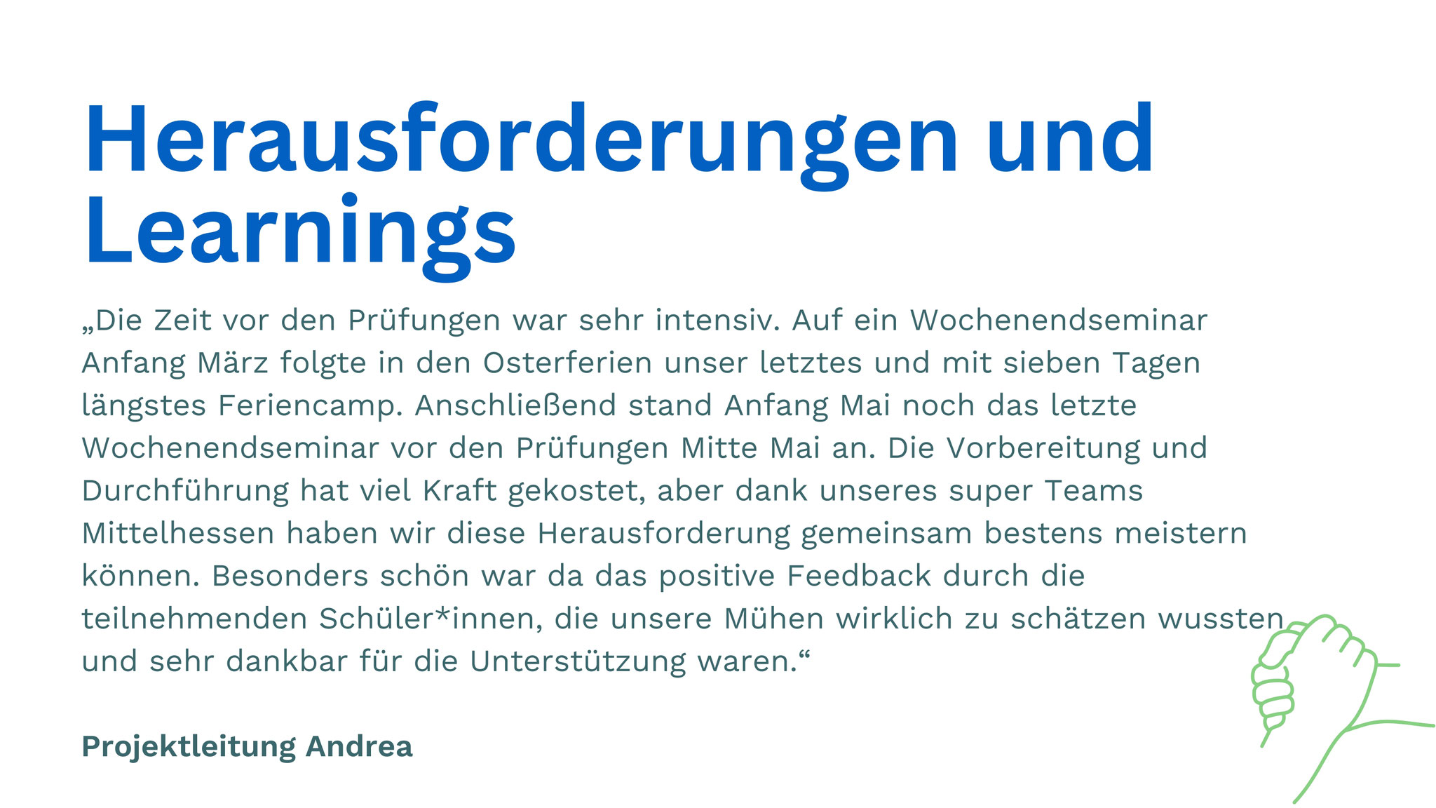 Besonders spannend ist dabei auch die Entwicklungen der Schüler*innen mitzuerleben.