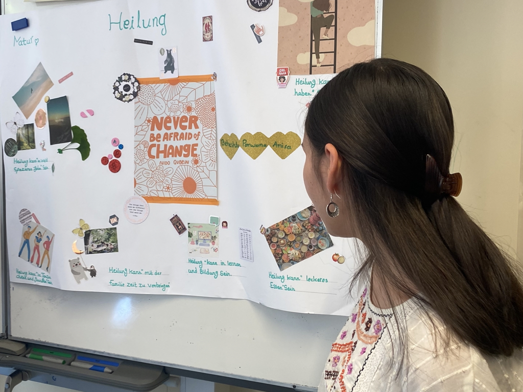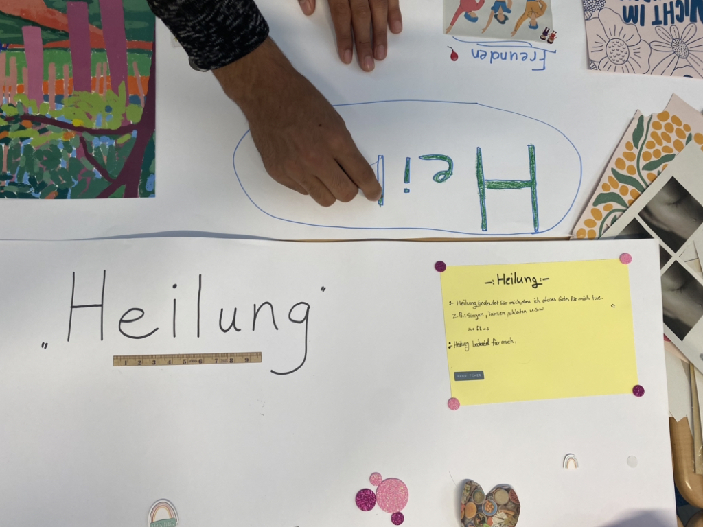 haben wir viel diskutiert: Die Schüler*innen überlegten, wie sie persönlich Heilung erfahren und interpretieren. Die Erstellung von Plakaten wurde zu einer kreativen Leinwand, auf der sie ihre