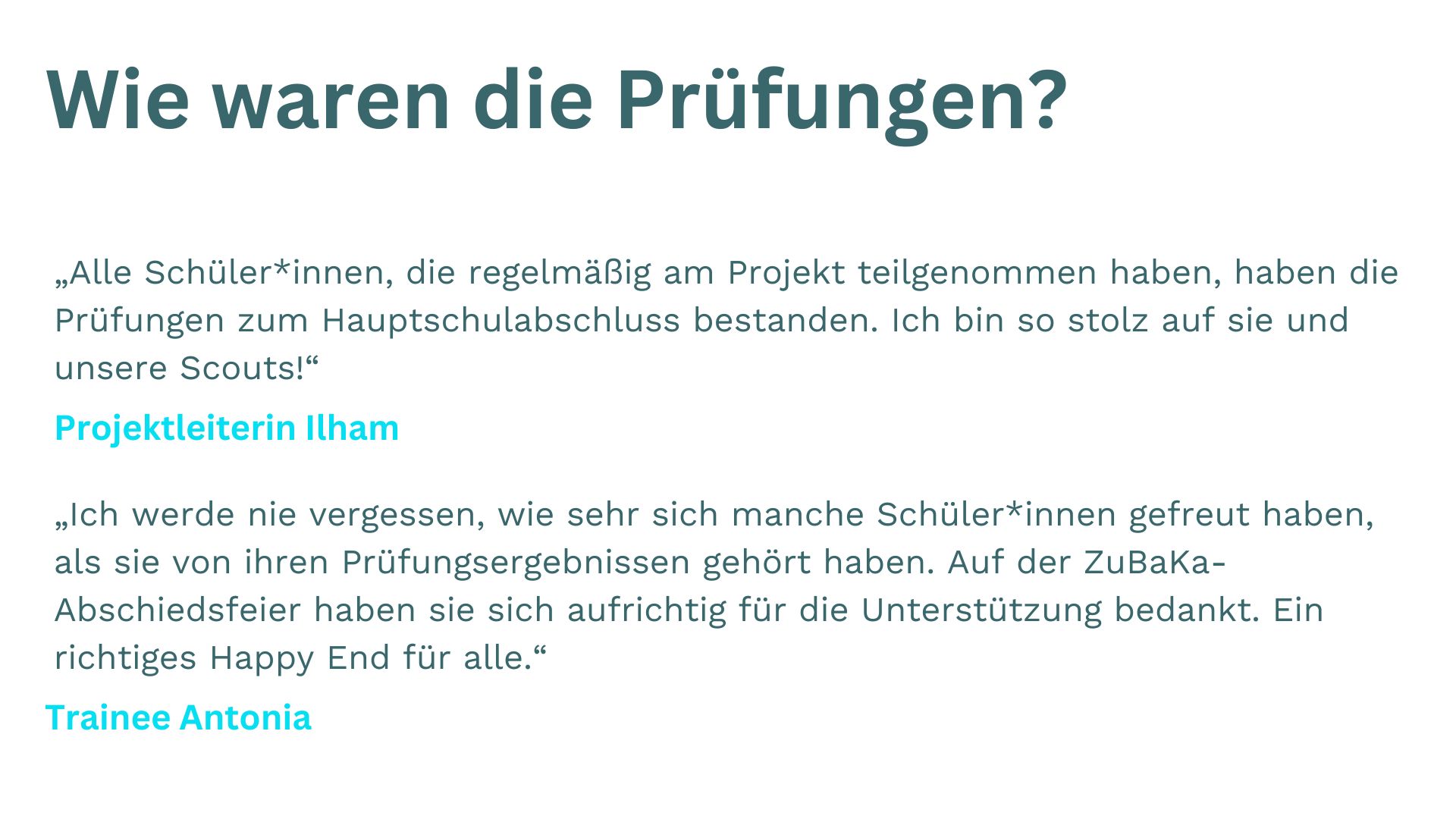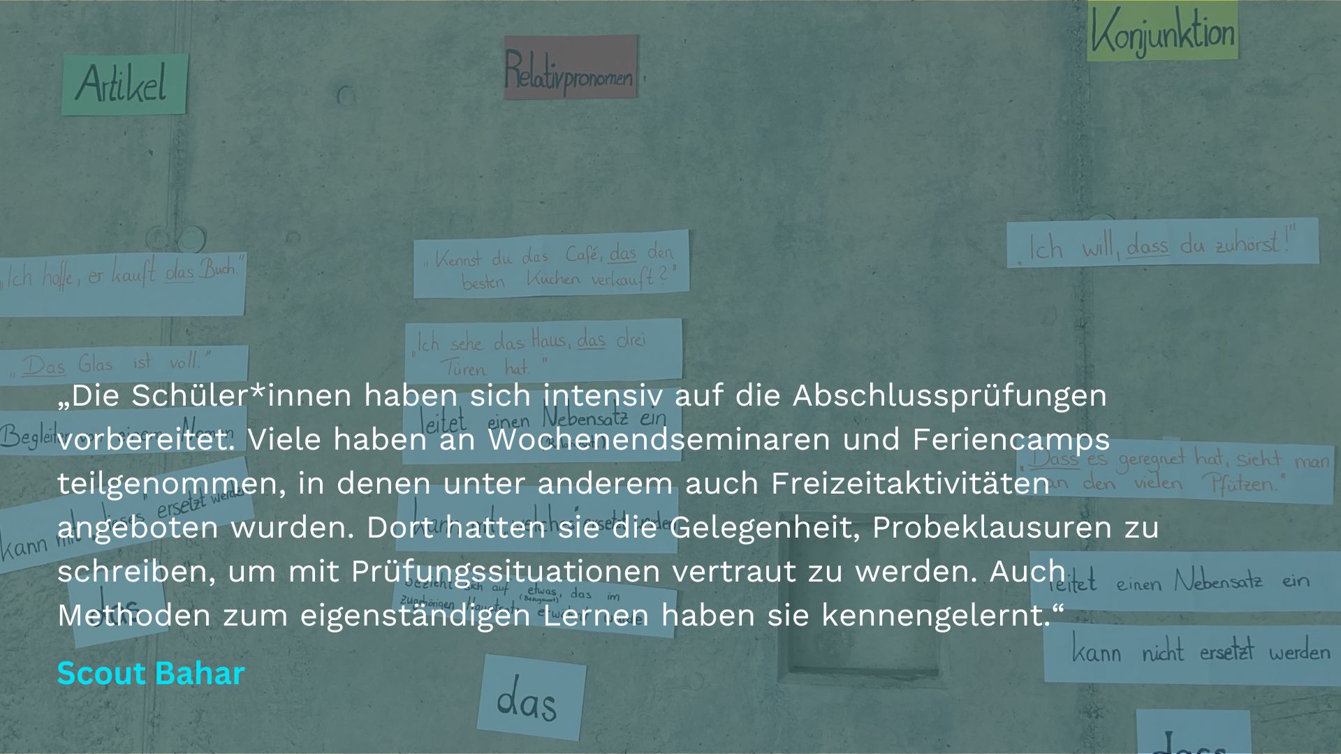 Die Scouts im Projekt Schulabschluss verstehen es immer wieder, Prüfungsvorbereitung nicht wie normalen Unterricht aussehen zu lassen. Und nun ist das Konzept auch in Mittelhessen im vollen Gange! Ob das ZuBaKa-Angebot den Schüler*innen bei den diesjährigen Prüfungen geholfen hat?