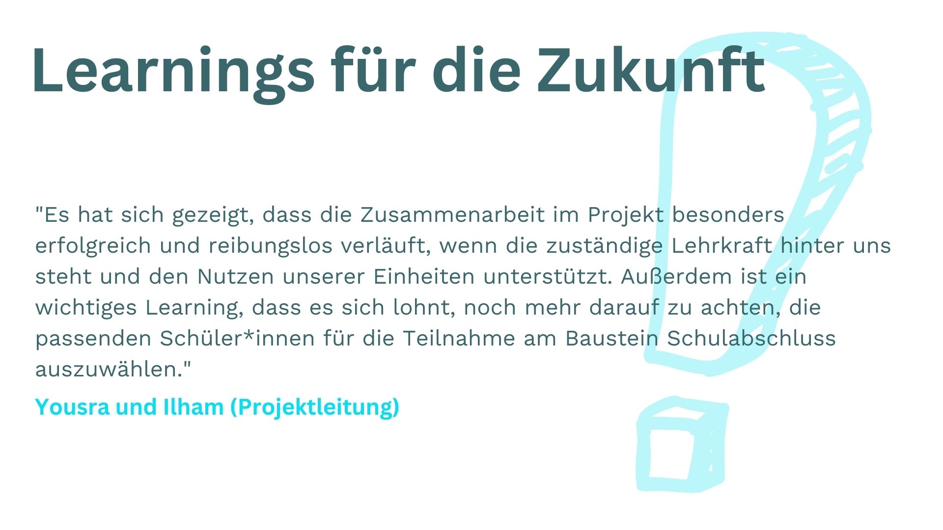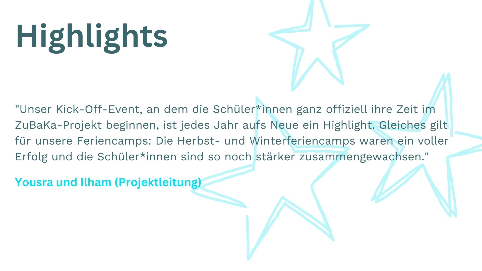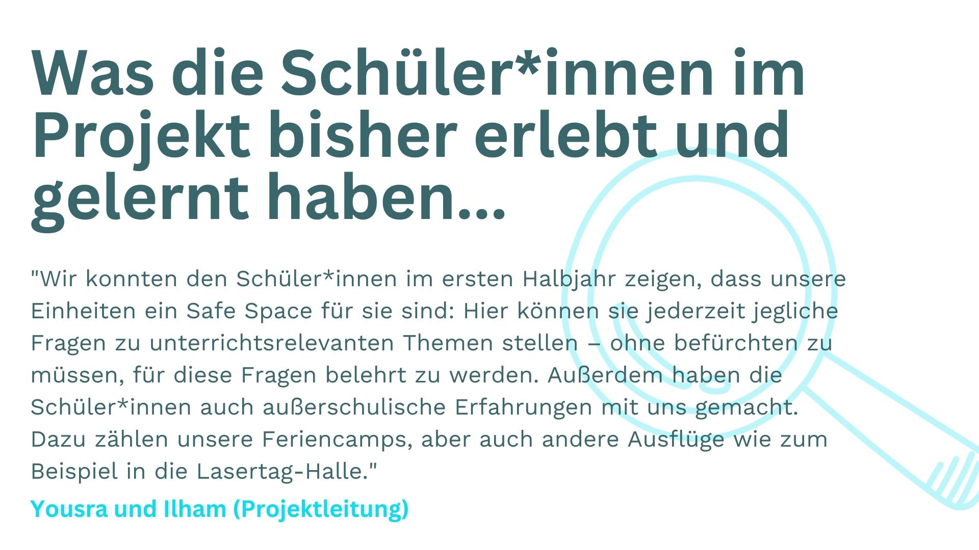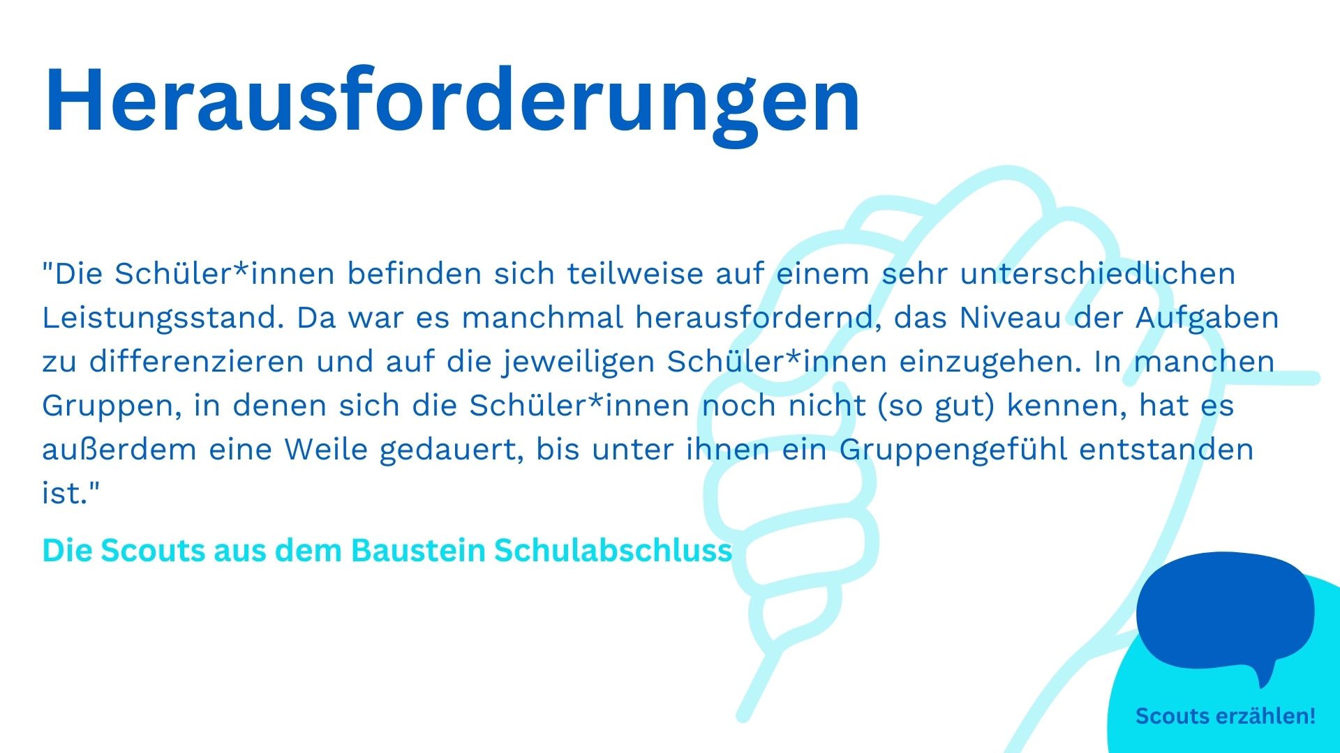 Die Scouts im Projekt Schulabschluss verstehen es immer wieder, Prüfungsvorbereitung nicht wie normalen Unterricht aussehen zu lassen. Und nun konnten wir mit diesem Konzept sogar einen neuen ZuBaKa-Standort erschließen! Was noch alles passiert ist, erzählen Yousra und Ilham, das Projektleitungsdoppel von Schulabschluss im Rhein-Main-Gebiet. Und selbstverständlich teilen auch die Scouts ihre Eindrücke vom zurückliegenden ersten Schulhalbjahr.